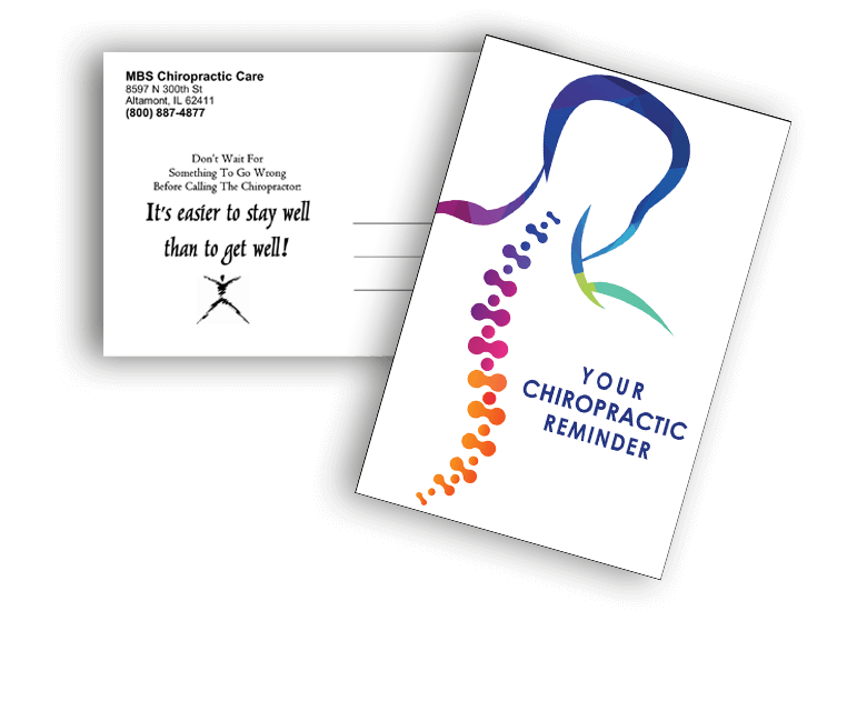 Whether you select one of our stock designs or go with your own logo, you’ll get the chiropractic advertising and marketing items that keep your practice moving. You can count on us for personalized service and a 100% satisfaction guarantee on all our products. Start shopping now and see the difference that MBSchiromarketing.com can make in your practice.